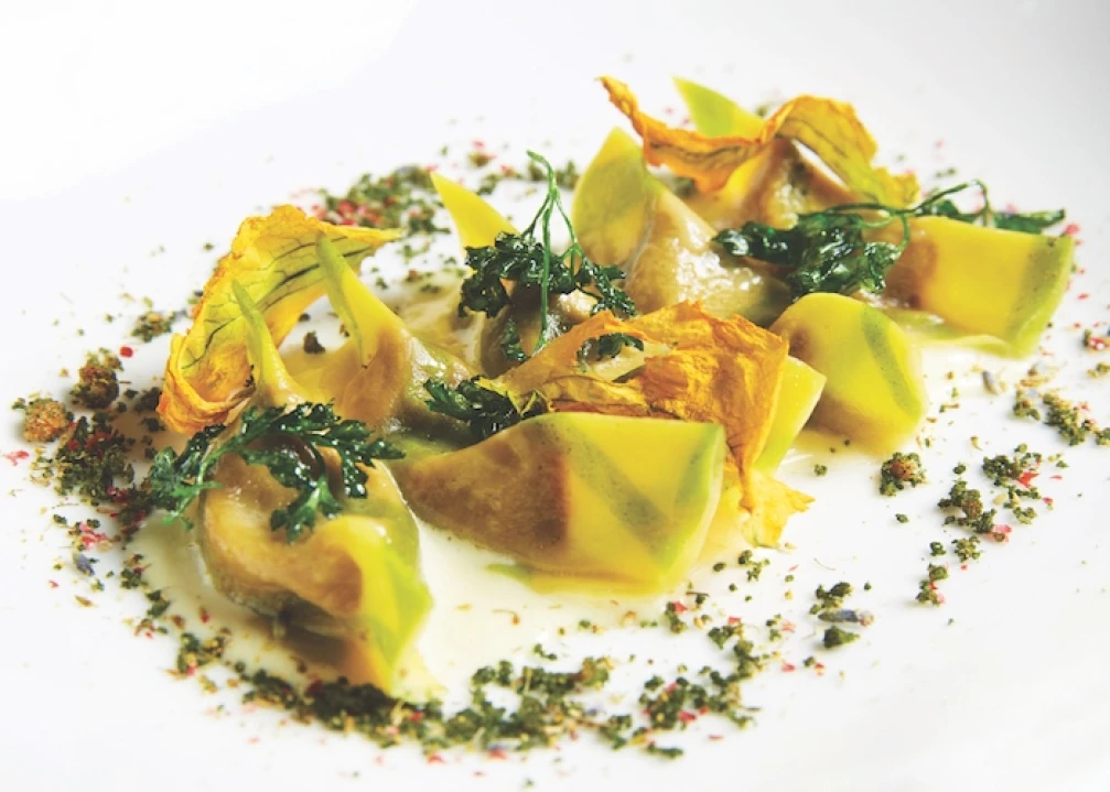 With its 8,200-square-foot dining room and wide-open kitchen, the grand palace of Italian seafood wouldn’t be out of place in Manhattan or Vegas (dinner at the mall has finally caught up with the $5,000 Mont-blanc watches sold upstairs). The transporting space nods to Italy’s Amalfi coast with white brick walls giving way to ocean blue subway tile, bougainvillea branches hanging from a wooden trellis, and a fireplace warming the outdoor patio.