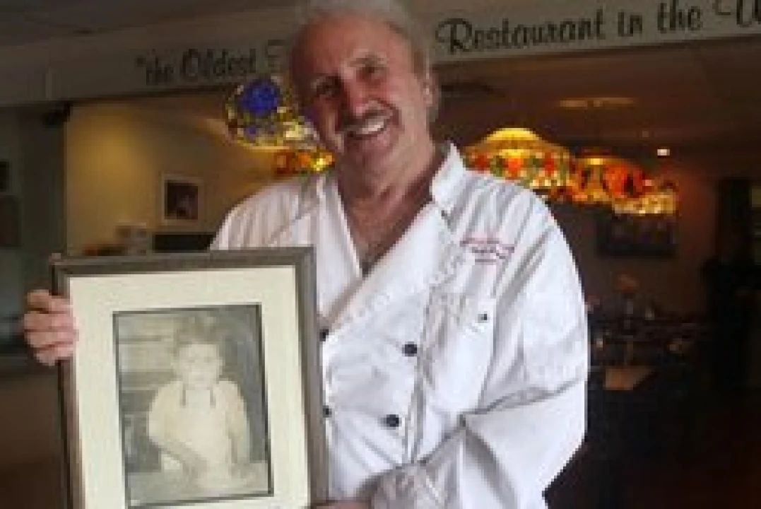 A 2-year-old boy wears a white apron, his sleeves rolled up to his elbows. He is perched atop a chair, too small to reach the counter without it. His small hands are starting to shape a soft round of pizza dough, an action he doesn't yet know he will repeat for the next 66 years.