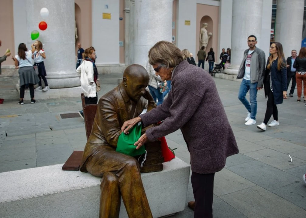 On a recent afternoon, a little girl gently patted the shoulder of a statue of the Italian writer Gabriele d’Annunzio, depicted sitting cross-legged and reading on a bench in a central square. “This is a girl who shows respect,” said Rosa Cacioppo Mantini, a 92-year-old retired high school literature teacher and committed Fascist who nearly every day stands guard over the statue and adorns it with an Italian flag.