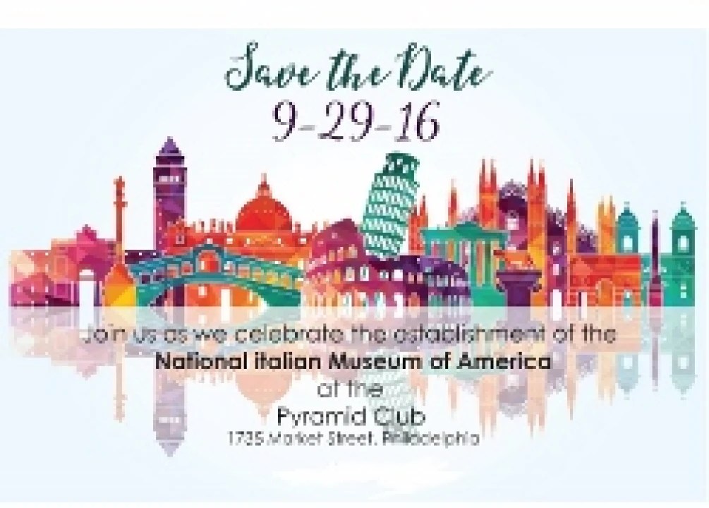 A night of celebrating Italian culture and influence in America. As well as a chance to learn about our mission and become a founding member of the Museum! WHEN: Thursday, September 29, 2016 from 6:00 PM to 10:00 PM (EDT). WHERE: Pyramid Club - 1735 Market Street, Philadelphia, PA 19103, United States