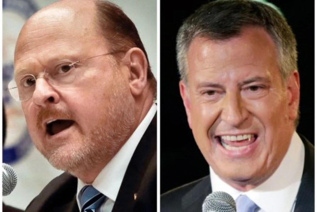 Democrat Bill de Blasio and Republican Joe Lhota waved to cheering supporters lining the parade route along Manhattan's Fifth Avenue. The two never crossed paths but will square off Tuesday night for their first mayoral debate before the Nov. 5 general election. De Blasio, the city's public advocate, has nearly a 50 percentage point lead in recent polls, and some of Monday's visuals reinforced his status as the front-runner in a city where Democrats outnumber Republicans by a 6-1 ratio.