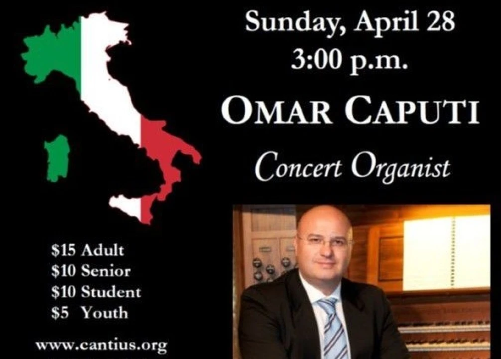 Sunday, April 28th at 3:00pm. St. John Cantius Church, 825 N. Carpenter St. Chicago, IL. This concert is sponsored by the Italian Cultural Institute of Chicago. Omar Caputi is the Titular Organist of the most prestigious organ in Italy, the four-keyboard mechanical organ made by the Zanin company and located in the St. Ritas Sanctuary in Turin, Artistic Director of the St. Ritas International Organ Festival, one of the most important and longevous in Italy.