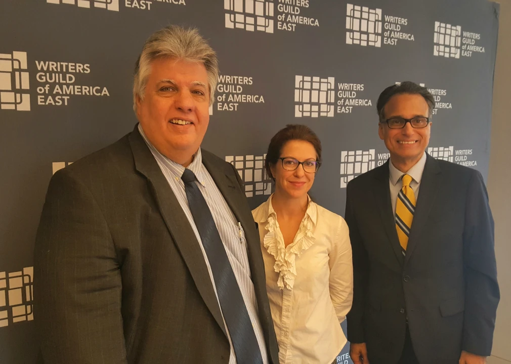 Italian American One Voice Coalition Executive Board Members Andre DiMino and Frank Cipolla late last week conducted a major presentation before members of the Writers Guild of America East Chapter at the guild's Manhattan offices.