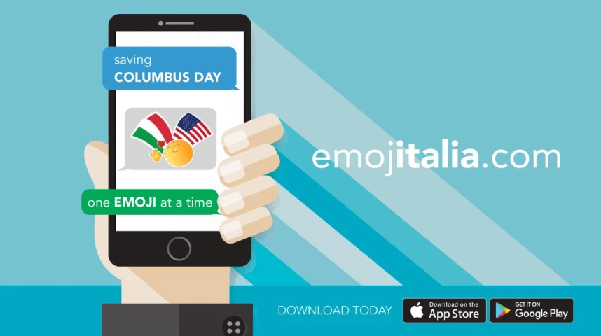 Infine, siamo stati promotori di una nuova app - disponibile sul mercato statunitense – chiamata Emojitalia. Si tratta di un divertente sistema di messaggistica, ma soprattutto permette agli utenti di contattare direttamente i loro rappresentanti eletti nelle istituzioni per far sentire la loro voce e mostrare ai politici il loro sostegno al Columbus Day.