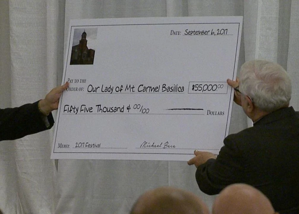 A $55,000 check was handed to the Reverend Monsignor of Our Lady of Mount Carmel in Youngstown on Wednesday. It’s the money that was raised from the Italian festival over the summer. Wednesday was a night to celebrate the dozens of volunteers that put on the event and the many sponsors.