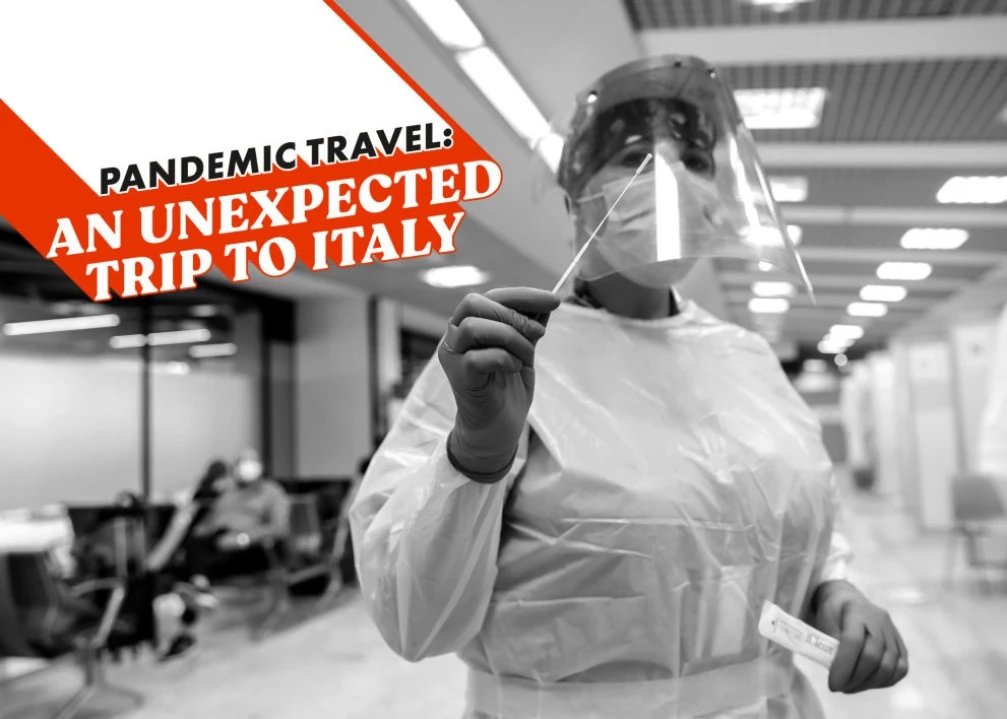 Most of the passengers are too tired, anxious, or distracted to take him up on his offer: a neatly packaged piece of pandoro, a traditional Italian Christmas cake. I happily accept the sugar-dusted wedge. Another slice of humanity, I think. I take it with me as we check in for our third COVID test in three days.