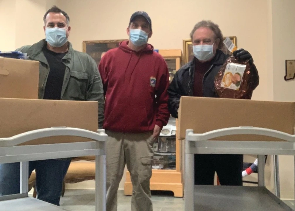 Due to strict restrictions because of the COVID-19 pandemic, only two Pannese Society officials, Vice President David Venditilli and Warden Jason Parenteau, delivered 20 hams to the Johnston Senior Center that Executive Director Anthony Zompa distributed to people in need. In past years the organization has put together food baskets, but that had to be scaled back this year because of the coronavirus.
