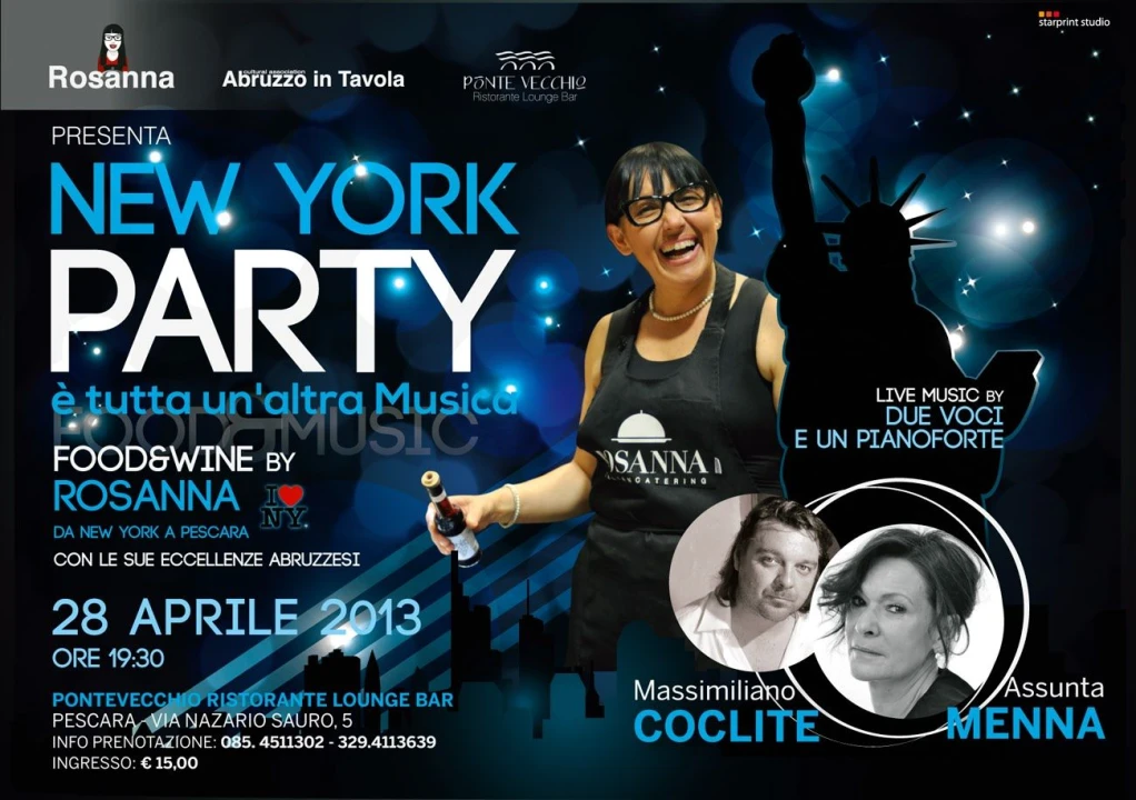 Evento imperdibile per chi vuole vivere una serata stile party newyorkese. Il ritmo della serata sarà cadenzato dalle degustazioni della cucina e dei vini proposti da Rosanna, Ambasciatrice a New York delle Eccellenze Food&Wine Abruzzesi. L'atmosfera della serata non poteva avere migliori interpreti musicali di ASSUNTA Menna e