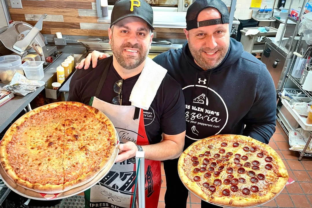 Passalinqua, 46, who was making pizzas while Abraham, 47, was being interviewed, occasionally shouted across the small cafe that Abraham was "stealing his thunder." "We don't just make pizza," Abraham said, after throwing an off-color joke his way. "We also make meatballs, lots of sauces, sandwiches and pasta dishes."