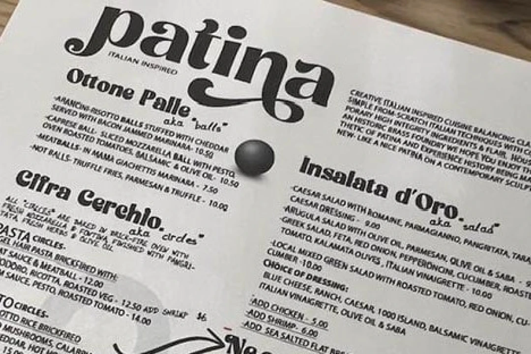 Enter Patina Italian Inspired, Waynesboro’s latest culinary option with from-scratch techniques and high-integrity ingredients. The 60-person eatery with an upscale industrial feel features tables made from heart pine reclaimed wood from the ceiling next door and old sprinkler pipes making up the table legs. The chandelier over the bar nearby is made from an electrical conduit that was literally pulled from a trash pile and transformed into a contemporary 20-foot chandelier.