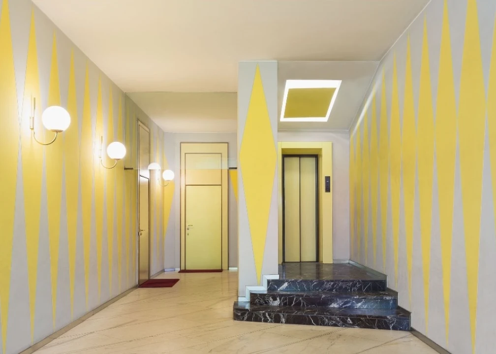 Some embody truly historical design partnerships, from Aldo Andreani’s Palazzo Sola-Busca (1924-1930) marked by the grotesque Symbolist sculptures by Adolfo Wildt, to a 1950s limestone corridor by Gaetano Brusa embedded with the ceramicist Pietro Melandri’s dramatic bas-reliefs. Designed in the late 1930s, Piero Portaluppi’s own Casa Portaluppi features too, its stairs and walls lined with jade-colored Verde Malachite.