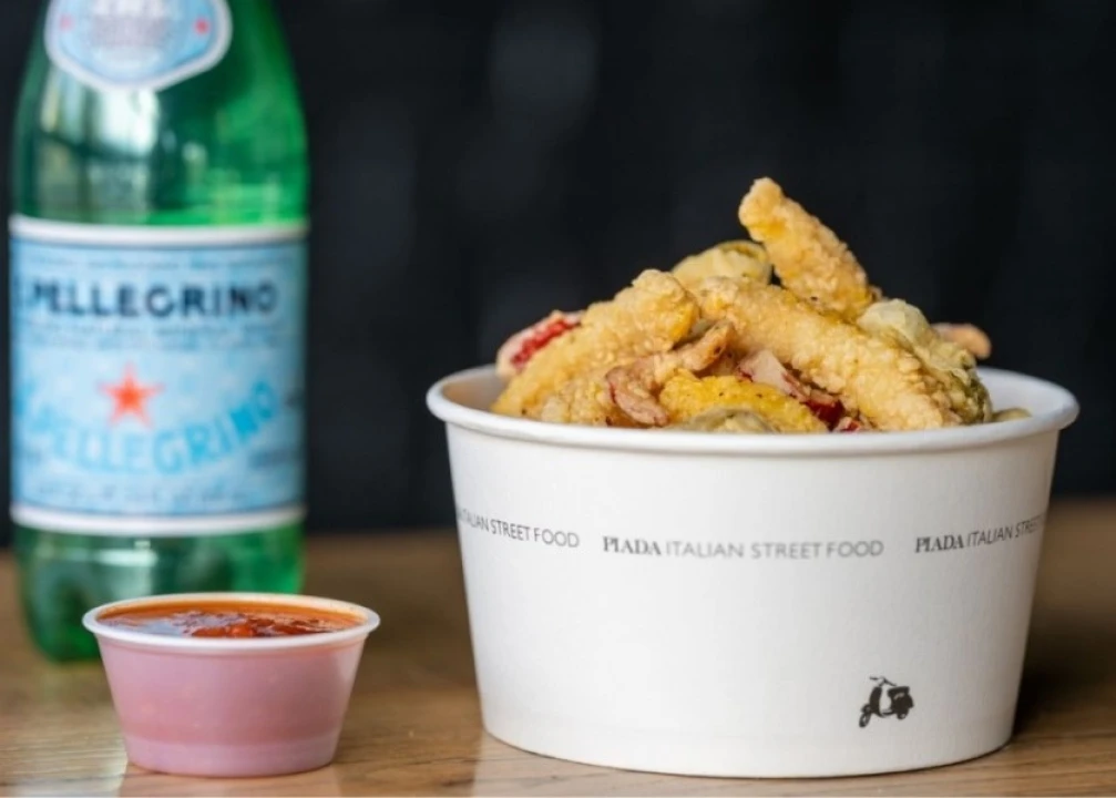 The eatery’s menu features hand-rolled wraps baked on a stone grill, salads, bowls and pasta dishes. Customers can either choose from one of Piada’s preset items, such as the Bacon and Blue bowl—made with mixed greens, red cabbage, brown rice and quinoa, blue cheese, pancetta, roasted sweet potatoes, dried cranberries, and a cider vinaigrette—or customize their meal with their choice of ingredients.