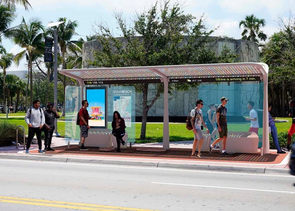 Drawing inspiration from the City of Miami Beach’s playful, dynamic, and energetic atmosphere, Pininfarina crafted a color palette and nature inspired shapes that capture the vibrant personality of Miami Beach. The bus shelters feature innovative modular designs and contemporary technology that highlight Pininfarina’s goal of creating a modern, airy, accessible and comfortable user experience, where beauty is never sacrificed for functionality.