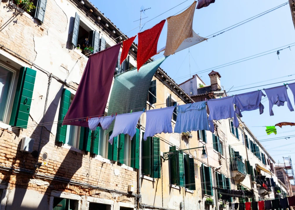 Not many countries in the world make of their clean laundry a street decoration, but Italy does. From Venice to Florence, from Naples to Bozen, lines of blues and reds, browns and yellows and greens and whites, all hang out of our windows like a fragrant rainbow of normality, and god only knows how much we need that, nowadays.