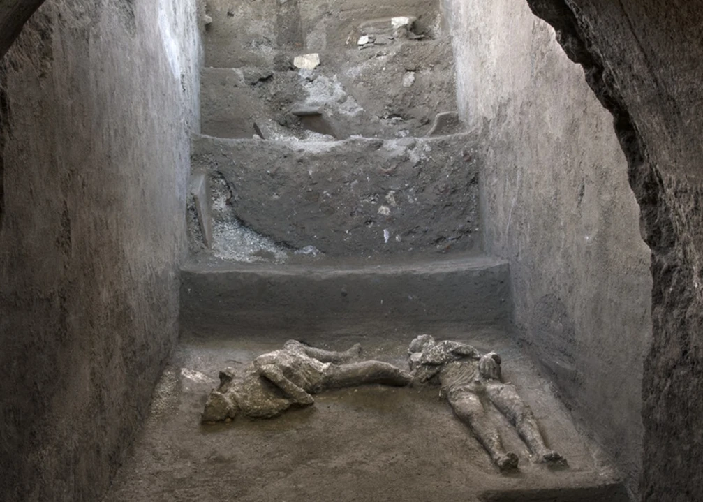 The almost perfectly preserved remains of two men have been unearthed in an extraordinary discovery in the ancient Roman city of Pompeii. The bodies of what are thought to be a wealthy man and his slave, believed to have died as they were fleeing the catastrophic eruption of Mount Vesuvius in AD79, were found during excavations at a villa in the outskirts of the city, Pompeii archaeological park officials said yesterday.