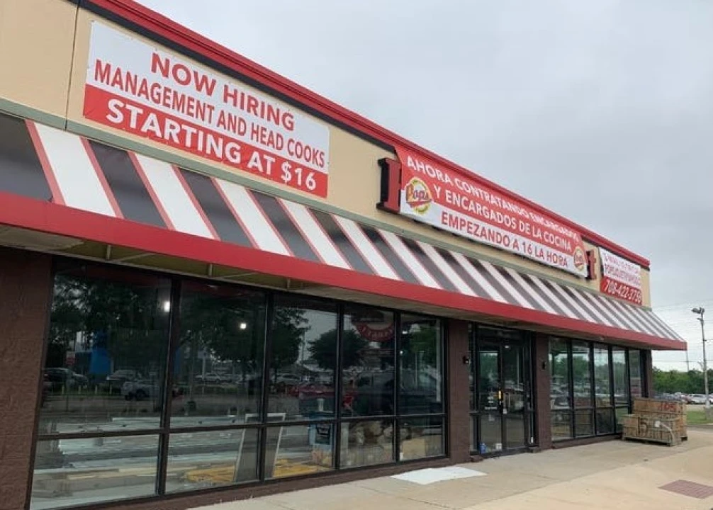 Starting wages for management and head cooks will be at least $16 per hour, the emplyment sign reads. Back in January, the new Pop's restaurant owner Joe Haberkorn told Joliet Patch that he owns six Popeyes Louisiana Kitchen fast-food restaurants in the Chicago suburbs, but none is in Joliet.