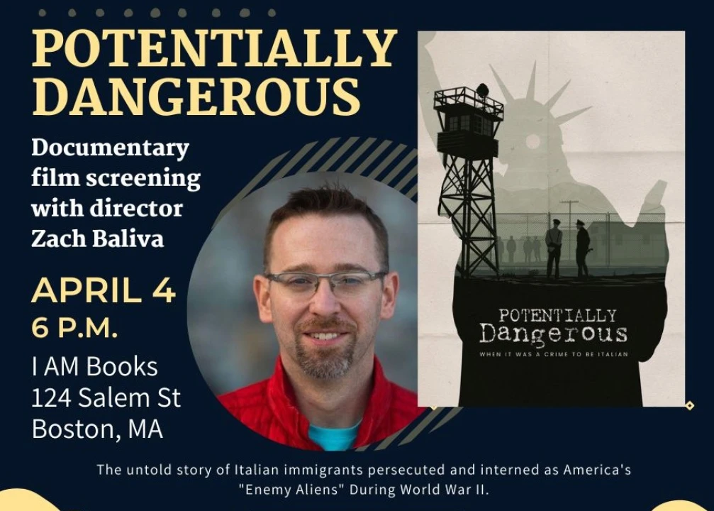 Tuesday, April 4 – 6 p.m. I AM Books, 124 Salem St., Boston MA 02113 (Register Here). A feature-length documentary from executive producer John Turturro on the untold story of Italian immigrants persecuted and interned as America’s “Enemy Aliens” During World War II. Potentially Dangerous won the 2021 Russo Brothers Italian American Film Forum and took home the Golden Dragon for best documentary at the Ferrara Film Festival.