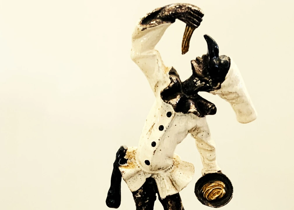 It is impossible to visit Naples and not see the thousands of ceramic and plastic images of Pulcinella in shop windows lining Via Spaccanapoli that cuts through Naples’ historic center. A commedia dell’arte figure, dating back to the sixteenth century, Pulcinella served in his improvised roles as an everyman, assuming any role needed in the early Italian theater.