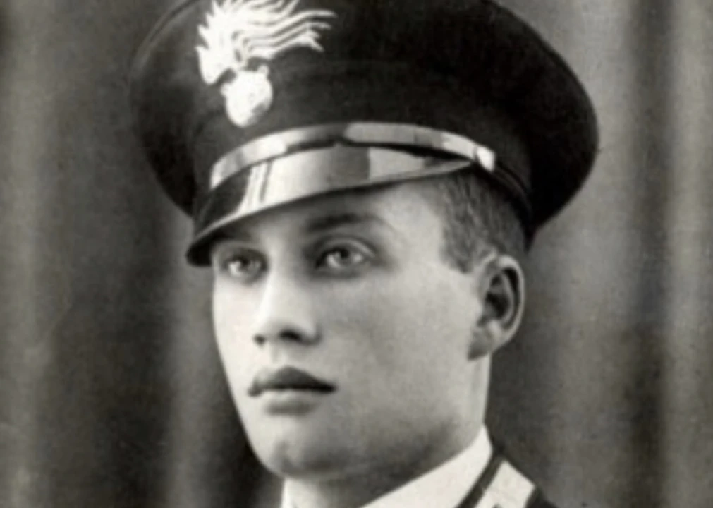 Salvo D'Acquisto was born in Naples on October 15th, 1920. In 1939, during the Fascist epoch, he voluntarily enlisted in the Carabinieri, which was at the time the first corps of the Italian army in addition to military/federal police (Gendarmerie). A year later, shortly before the start of the Second World War, he was dispatched to Libya with the 608th Police Section. During his tour he was wounded but remained with his division until contracting malaria. In 1942 he returned to Italy, was sent to officer school and graduated as a vice brigadier (deputy sergeant).