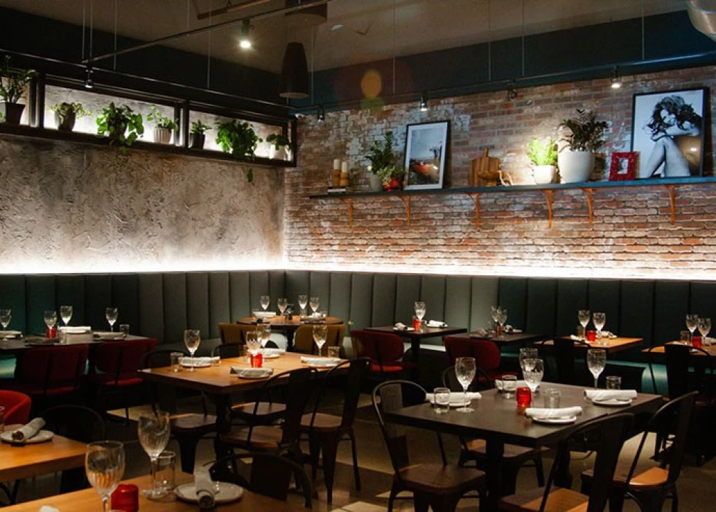 Rosso Italian offers a rustic yet modern design, with exposed brick, concrete textures, black finishes and a plethora of plants breathing life into the space. The dim lighting and red accents create a cozy and intimate atmosphere that welcomes all occasions, from romantic date nights to laidback sips with friends.