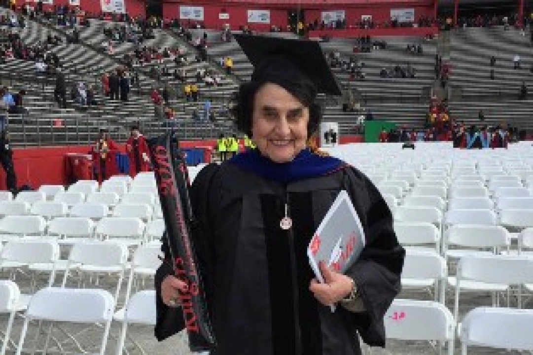 During the convocation on May 13 from the Graduate School of New Brunswick, reader Dean Wasserman said of Ida Marinzoli, "This candidate is graduating with the distinction of being the most senior of our more than 16,900 graduates this year."