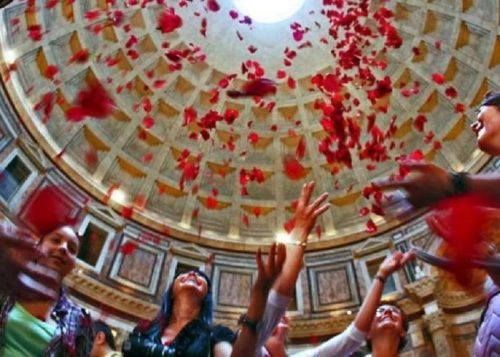 The spectacular tradition of rose petals fluttering down through the oculus of the Pantheon is scheduled on Sunday 31 May from 10.00 following Mass for the Feast of Pentecost. However, due to the covid-19 crisis, this year the annual tradition will take place behind closed doors for the first time, broadcast live from the Pantheon's official website, beginning at 10.00.