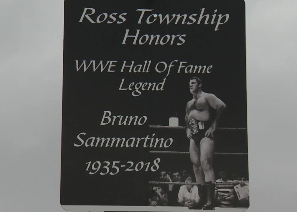 Ross Township honored Bruno Sammartino on Friday by renaming a park in honor of the late pro wrestling star, who lived in the northern Pittsburgh suburb for more than 50 years. "My dad would be ecstatic about this, so it's a very, very nice honor for us. Very humbling," said Darryl Sammartino, who attended the ceremony at the former Sangree Park with his mother, Carol.