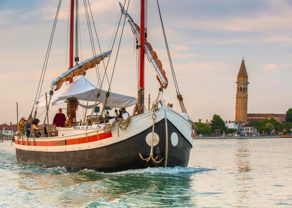 It’s back to business on the Venetian lagoon with a new season of bespoke cruises (with an art twist) on Eolo, the 75-year-old traditional bragozzo Venetian fishing barge with standout russet sails. The lagoon around Venice is a vast enclosed bay of the Adriatic Sea (at 550 square kilometers, it is two thirds the size of the New York City). Exploring its dozens of islands, historical sites and fascinating ecosystem is a must for anyone visiting the city.