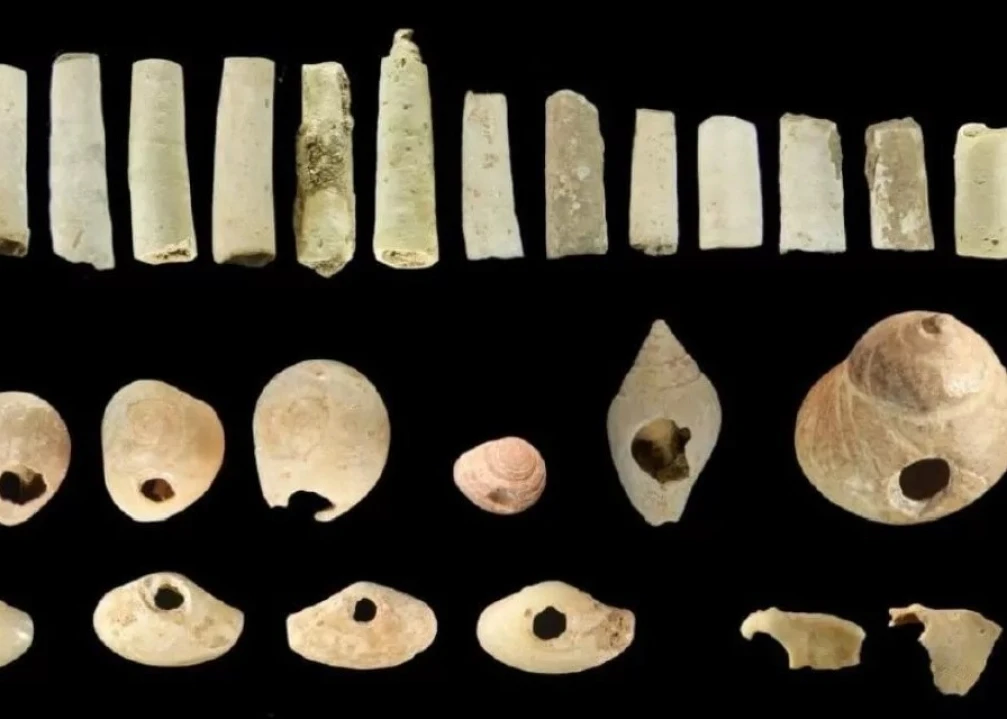 What is most interesting, the jewelry is homogeneous. There is the idea of a standardization, in short of a style, a primitive form of fashion. It may seem strange to think of our ancestors enchanting themselves in front of and painted shell jewelry, commenting on the most beautiful form; but in this they are in nothing different from us, with our brands and high fashion stores. The love of beauty is part of our evolution as a species, and findings like this show us that the cognitive leap from the animal world had already happened.
