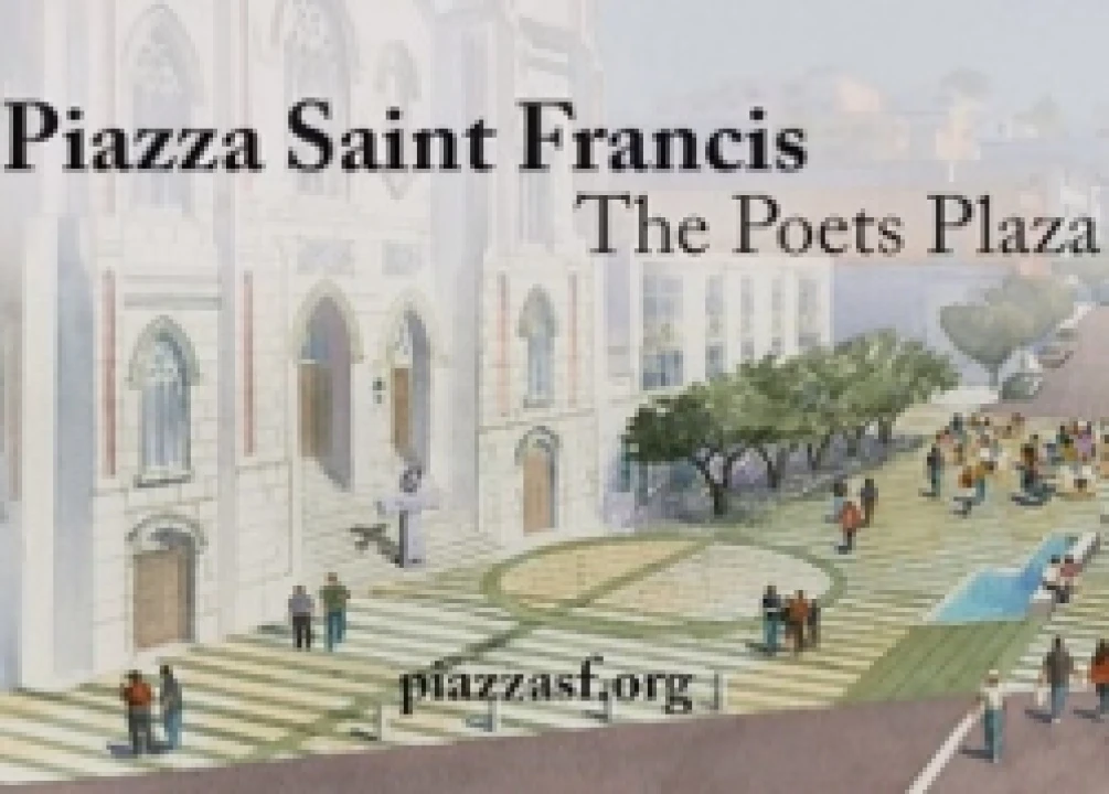 What's the big deal, you ask? The jewel of North Beach is historical Washington Square where community members congregate under the shade of the spires of Saints Peter and Paul Church to eat, game and converse. This famous park began as farmland and cattle pasture in the mid 1800′s and currently is hemmed in by the busy streets of North Beach on all sides. Now a community initiative led by Angela Alioto and supported by poet Lawrence Ferlinghetti, is launching the project of a dazzling new centerpiece of Italian life in San Francisco, always in North Beach. It will be called "Piazza Saint Francis, the Poets Piazza", in honor of Italy's patron saint, Saint Francis of Assisi.