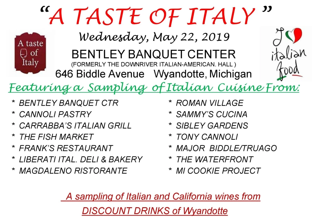 A popular and tasty fundraiser for the Penrickton Center for Blind Children is returning to Wyandotte for its 13th year. Hosted by the Downriver Italian American Club, “A Taste of Italy” features a sampling of Italian food from 6 to 8 p.m. May 22 at the Bentley Banquet Center (formerly the Downriver Italian American Club Hall), 646 Biddle Ave.