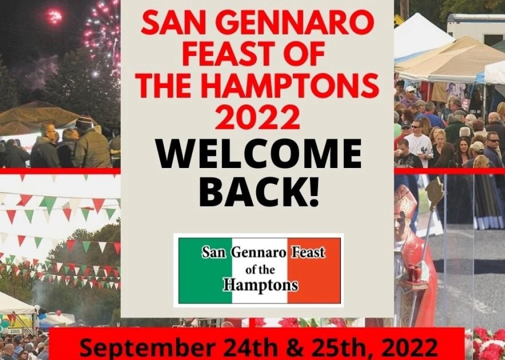Bring your appetites: The San Gennaro Feast of the Hamptons is back after the pandemic this weekend, bringing with it all the delicious tastes of Italy. The event takes place on Saturday and Sunday, Sept. 24 and Sept. 25, from 10 a.m. to 10 p.m. on Good Ground Road in Hampton Bays.