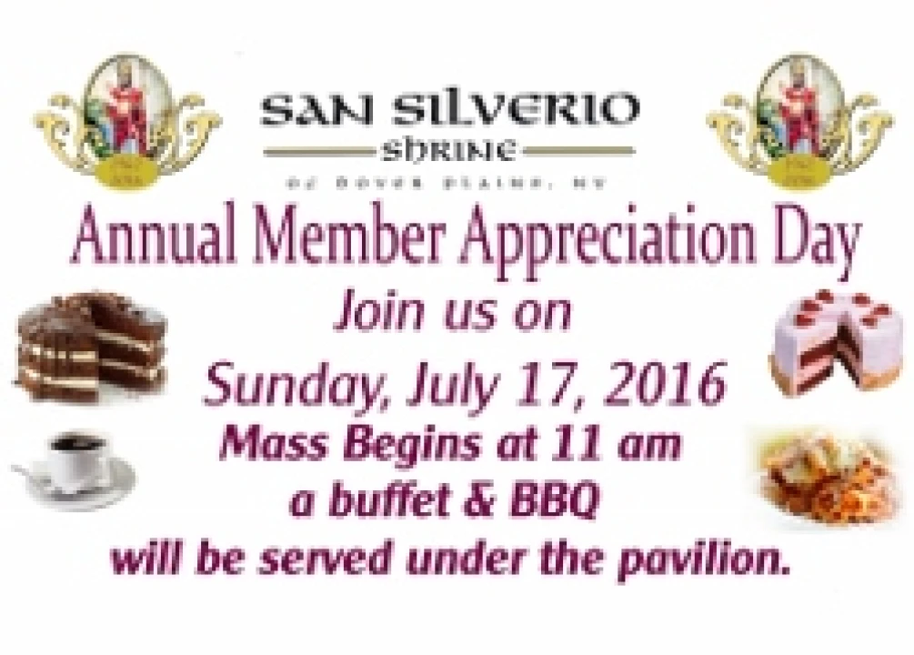 Join us on Sunday, July 17, 2016 for our Annual Members Appreciation Day and enjoy a fun filled day of delicious food, music, family, friends and being appreciated for your support of the San Silverio Shrine!