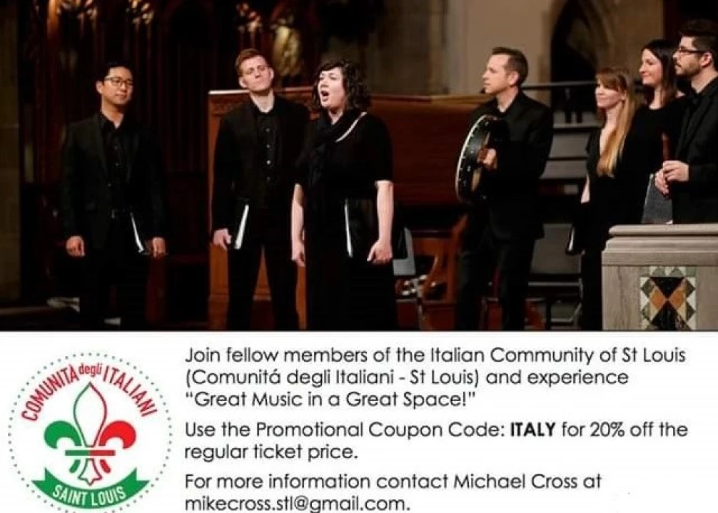 A special thanks goes to Scott Kennebeck of St. Louis Cathedral Concerts in giving members of the Italian Community of St Louis and our CLUB Italiano Per Piacere 20% off all regular ticket prices. Use the Promotional Coupon Code: ITALY for 20% off the regular ticket price. For more information contact Michael Cross at [email protected]