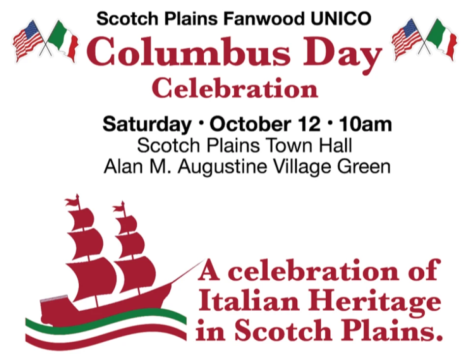 The Scotch Plains Fanwood chapter of UNICO, in collaboration with the Scotch Plains Italian-American Club, invites the community to its annual Columbus Day Italian Heritage Celebration, that will take place on Saturday, October 12, from 10:00 a.m. to 1:00 p.m. at Alan M. Augustine Park, adjacent to the Scotch Plains municipal building at 430 Park Avenue. In case of inclement weather, the event will be moved indoors.