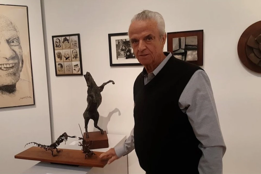 A practicing artist for 50-plus years, Joseph Burlini has made a name for himself by creating inventive kinetic sculptures and soaring public works. A native of Morton Grove, Burlini has a degree in industrial design from the School of the Art Institute of Chicago and spent six years designing for Sears, Roebuck and Co. before pivoting to making art in a variety of metals and other materials.