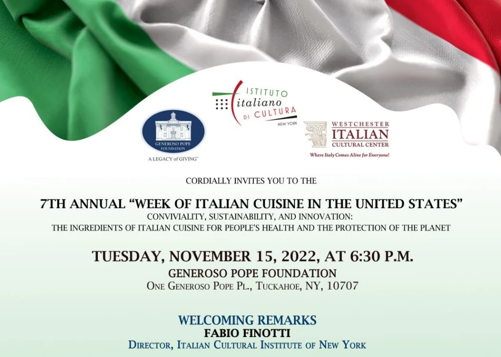 On November 15th, at 6:30 P.M., the Italian Cultural Institute of New York, in collaboration with the Generoso Pope Foundation and the Westchester Italian Cultural Center will host a panel discussiontitled “Conviviality, sustainability and innovation: the ingredients of Italian cuisine for people's health and the protection of the planet”.