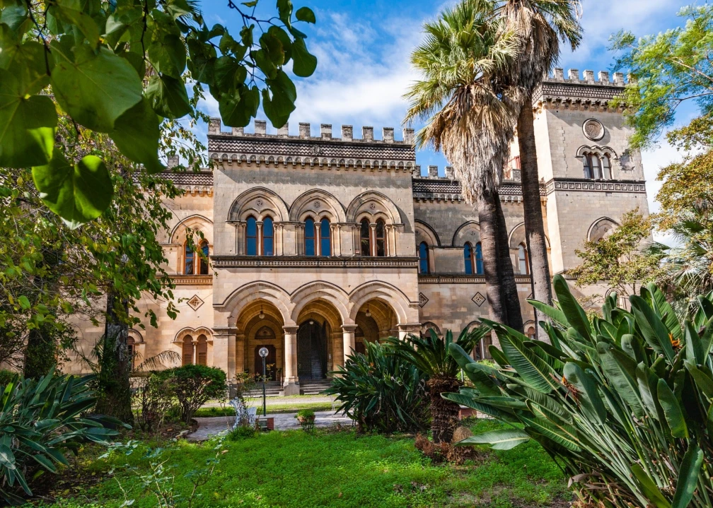 The history of the grand estate dates back to the end of the 19th century when Baron Pennisi tapped Palermo architect Giuseppe Matricolo to build a villa for his extensive art collection. The result was an eclectic neo-Gothic property comprised of three two-story buildings and two towers.