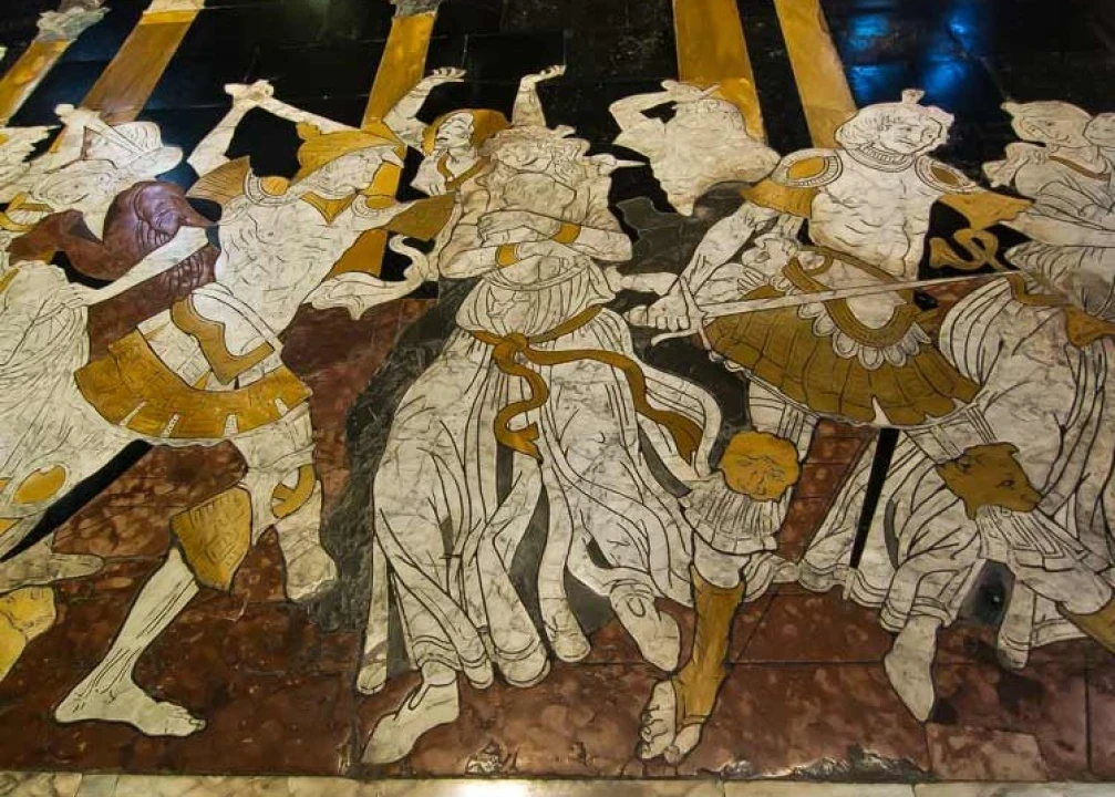 One of the top sights in the Tuscany hill town of Siena, is its magnificent Gothic-style Duomo or cathedral, and it’s even more spectacular when the inlaid marble floor is uncovered. These 56 unique floor panels depict stories and historical events.