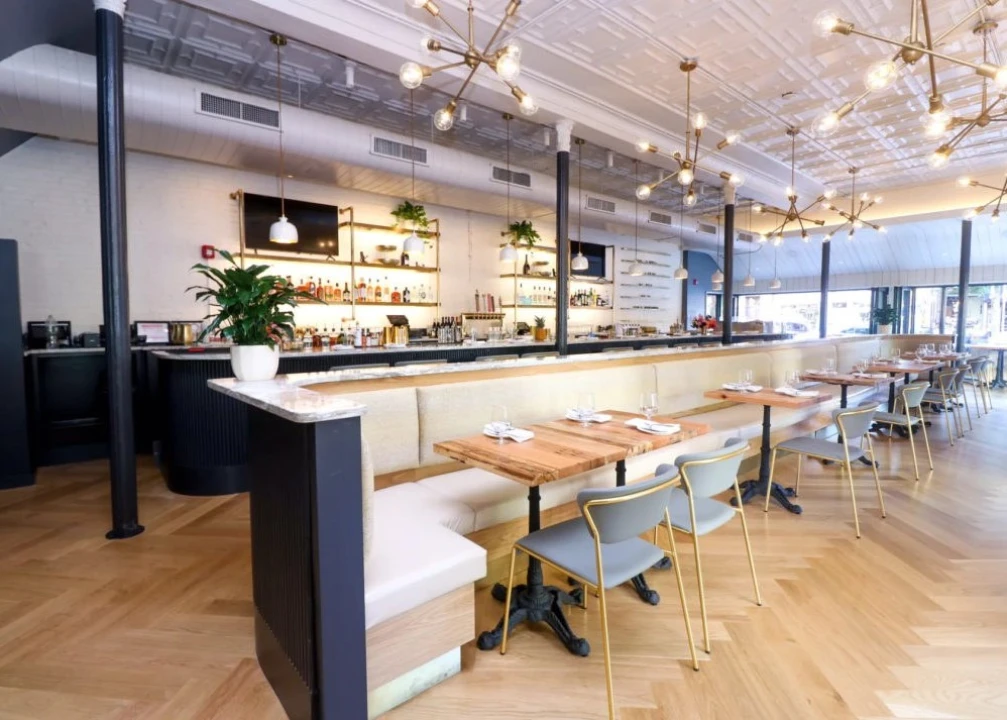 Sirenetta seats 150 guests at full capacity inside a 3,565 square-foot space. In fact, there are two distinct sections of the restaurant. “The front, which is the main dining room of the restaurant, is a bright, open space; with a mix of modern and art deco accents,” says owner Gabi Lombardi.