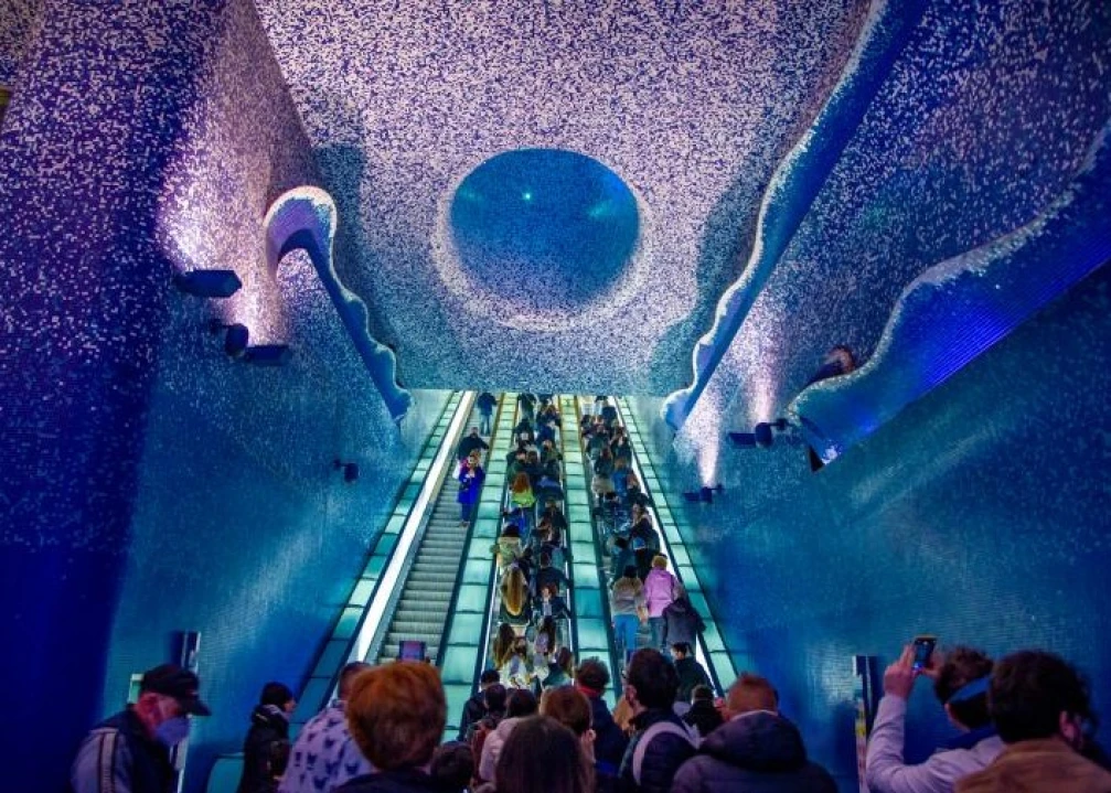 Naples’ busy metro is probably the last place you'd expect to find a contemporary art gallery. Yet gliding on an escalator 131 feet up to Toledo station in the Spanish Quarter mimics the experience of moving underwater.