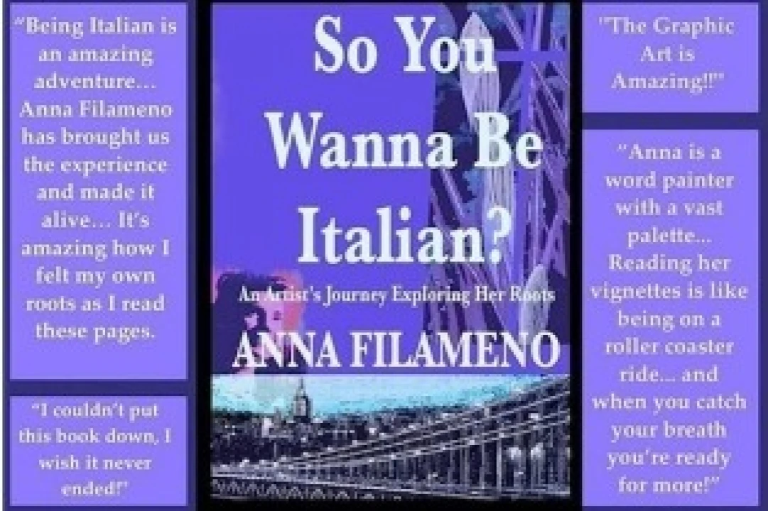 "So You Wanna Be Italian? - An Artist's Journey Exploring Her Roots" is a series of vignettes on various famous Italian figures who have had influence on the life of Anna Filameno. Anna gives us a unique experience as she explores her Italian roots. Each page has a beautiful background graphic art illustration that helps tell the story of each vignette.