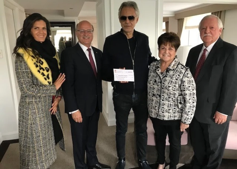 The Sons of Italy Foundation® (SIF), which is the philanthropic arm of the Order Sons and Daughters of Italy in America® (OSDIA), presented $100,000 in Central Italy earthquake relief to the Andrea Bocelli Foundation for the rebuilding of a kindergarten and elementary school in Muccia, a town located in the Marche region of Italy.