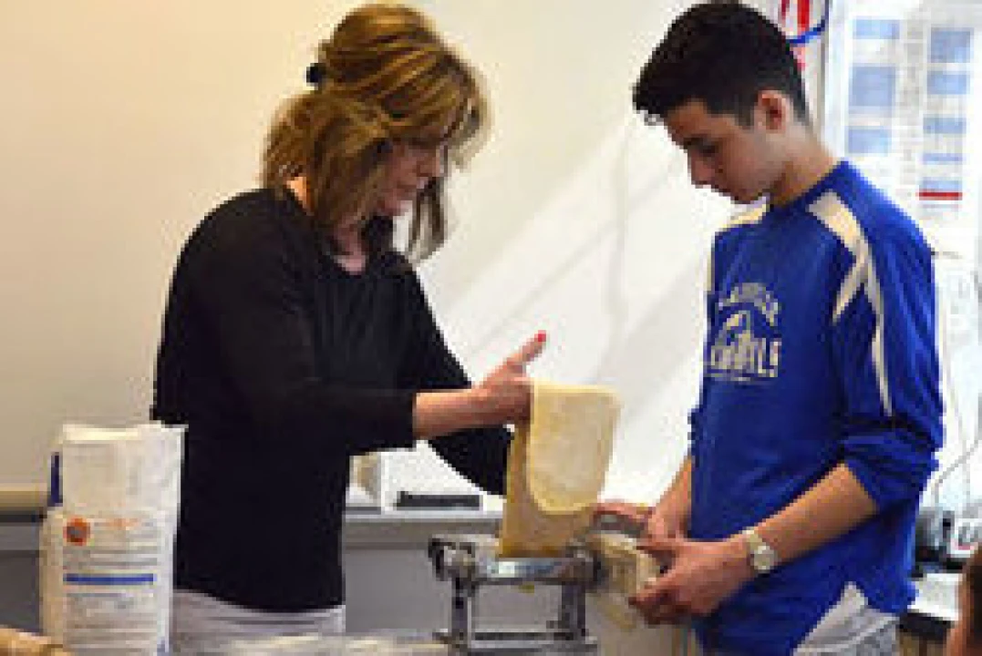 Students in Maria Colangelo's French-Italian club got a taste of traditional Italian cuisine Wednesday as professional chefs Tina Autunno and Rosa Rocco visited. The pair taught students how to make spinach and ricotta ravioli in a tangy orange sauce.