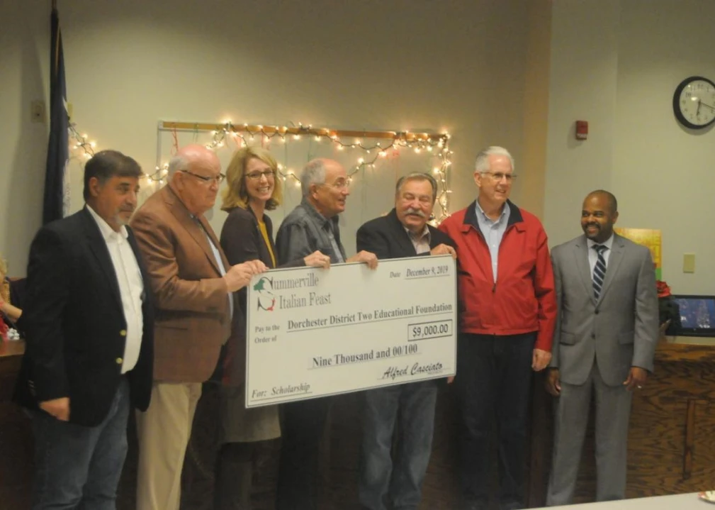 The Summerville Italian Feast donated $9,000 to the Dorchester District 2 Education Foundation.  The Summerville Italian Feast gave the check to Education Foundation founder Jennie Crosby and board chair James Weaver at the Dorchester District 2 school board meeting on December 9th.