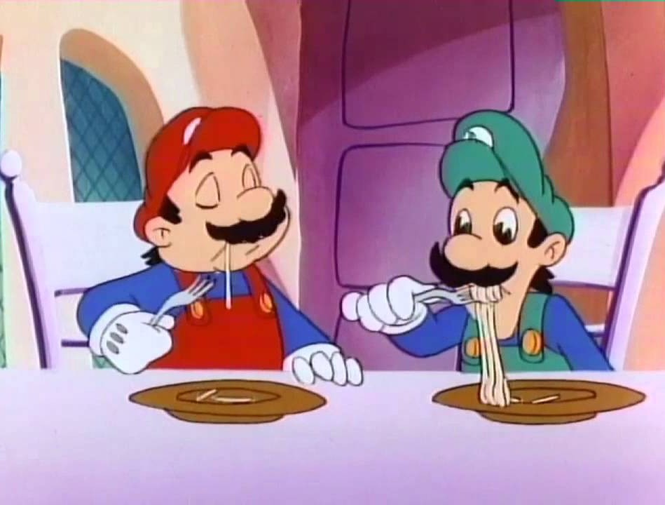 Riaffiora quindi qualche vecchio stereotipo, sebbene trasfigurato in una chiave bonaria e inoffensiva. Nella serie televisiva The Super Mario Bros. Super Show (1989) (un misto tra animazione e live action), Mario e Luigi sono gli italiani working class chiassosi, caciaroni e ossessionati dal cibo spesso riscontrati nelle industrie culturali anglofone. In alcune puntate della stessa serie, si notano alcune scene di “turf war” tra fazioni di personaggi cartooneschi in cui Mario e compagnia indossano dei gessati, insieme ad altri riferimenti che rischiano di evocare l’idea del gangster italoamericano, che ha lungamente connotato le narrazioni degli italiani negli Stati Uniti (attirando gli strali di associazioni come la Italian Anti-Defamation League e però anche il controverso e indimenticabile glamour dei film della New Hollywood).