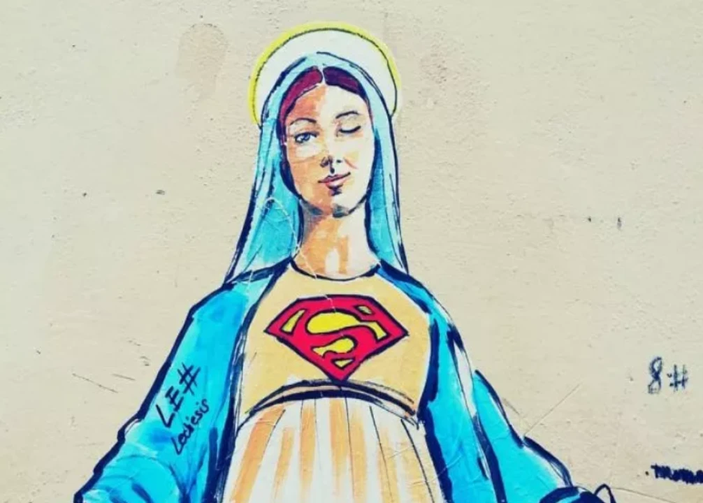 Newcomer LeDiesis has devised a street art treasure hunt in Florence for International Women’s Day. First announced on Instagram with hashtags #LeDiesis #8marzo2019 #streetart, the incognito creative or collective has affixed eight iconic women dressed as Superwoman throughout the city in spaces formerly occupied by doors and windows.