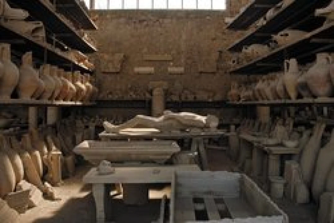We pass stone houses richly decorated with interior mosaics and frescoes, and a two-millennial-old snack bar, or Thermopolium, where workmen long ago stopped for lunchtime pick-me-ups of cheese and honey. Abruptly, we reach an orange-mesh barricade. "Vietato L'Ingresso," the sign says—entry forbidden.