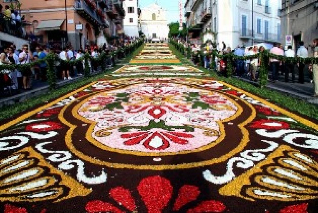This year, like almost every years since the 17th century, the main street in Genzano di Roma will be covered in petals for the traditional Infiorata. On the feast of Corpus Christi, next June 12-15, the uphill street from Piazza IV Novembre to the Church of Santa Maria della Cima will turn into a colorful carpet of flowers.