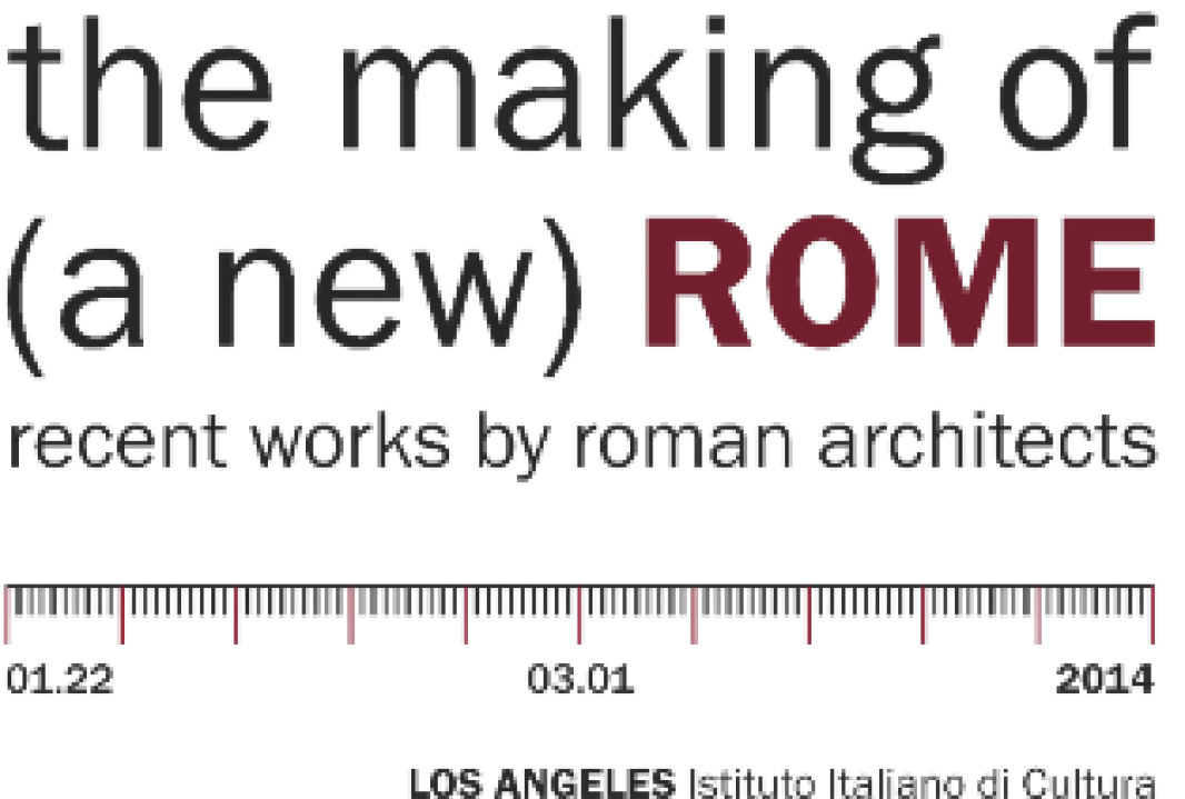 Under the auspices of the Consulate General of Italy in Los Angeles, The Italian Cultural Institute, Rome's Association of Architects, Builders Association of Rome and Province, Fondazione Almagià in collaboration with The Italian Trade Agency Los Angeles, AIA Los Angeles, and Woodbury School of Architecture cordially invite you to